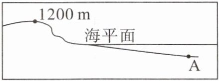 3. 通常,我们规定海平面的海拔高度为$0m$,高于海平面的为正。下图中,$A$地的海拔高度大约是(
