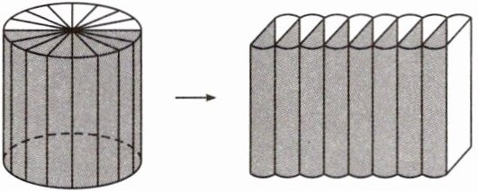 1. 如图,把一个底面直径和高都是$6\mathrm{c}\mathrm{m}$的圆柱切拼成一个近似的长方体,这个长方体的长是(