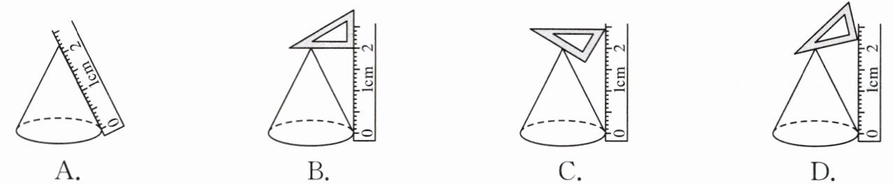 1. 下面测量圆锥的高的方法中,正确的是(