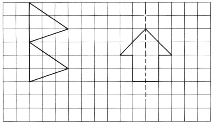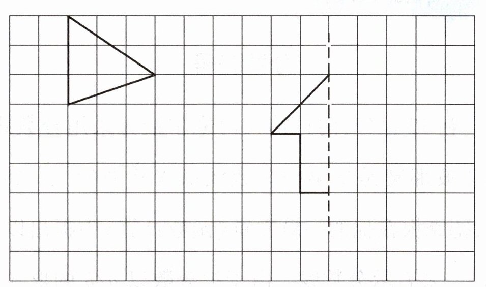 (2) 画出右面图形的另一半,使它成为一个轴对称图形。