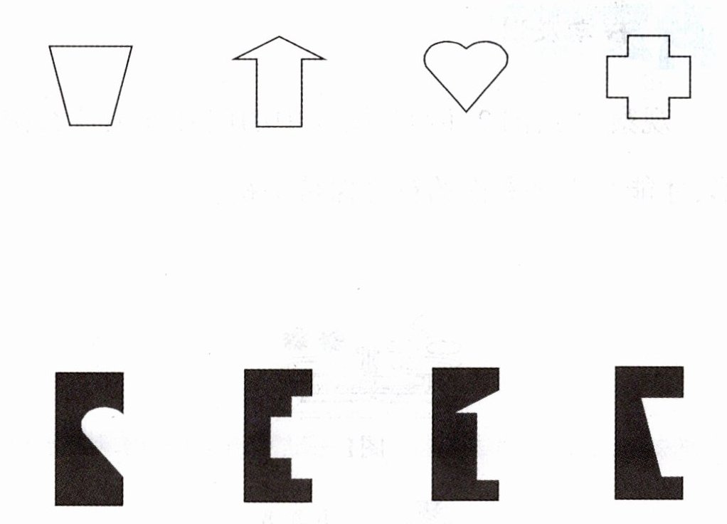 3. 下面的图形是从哪张纸上剪下来的,连一连。