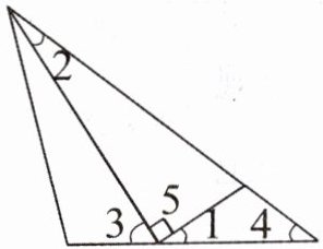 4. 如下图,已知 $ \angle 1 = 35 ^ { \circ } $,$ \angle 2 = 20 ^ { \circ } $,$ \angle 5 = 90 ^ { \circ } $,求 $ \angle 3 $和 $ \angle 4 $的度数。