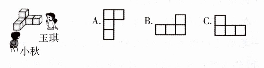 把下面的立体图中最右边的小方块拿走,玉琪看到的是(