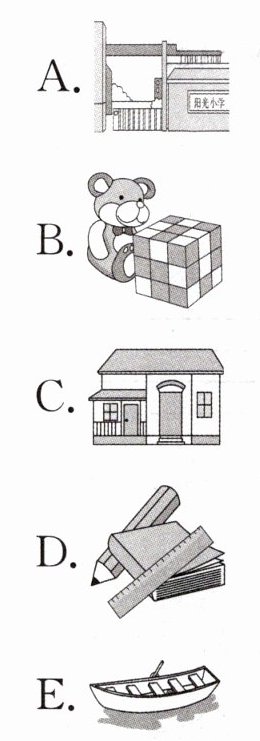 A. doll B. books C. cap D. bag E. shelf
