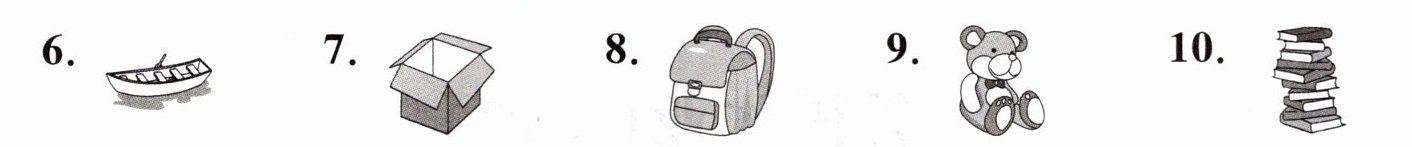 F. in G. on H. boat I. ball J. box