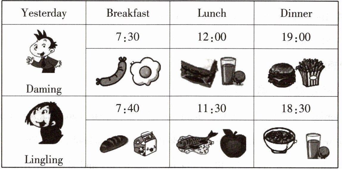 ( )5. Lingling had lunch at twelve o'clock yesterday.