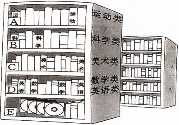 八、下面是学校的图书馆,请写一写各类书摆放的位置,不少于5句话。