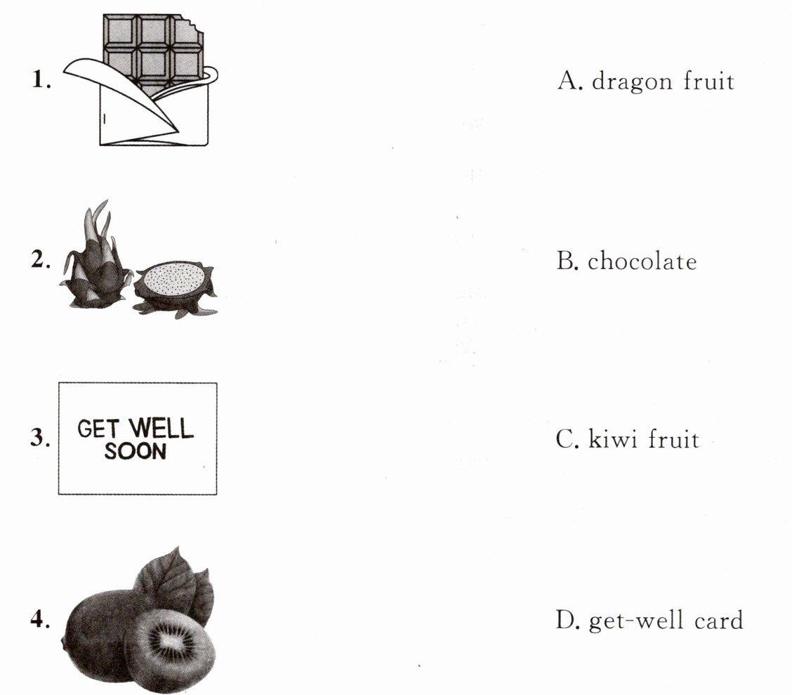 1. fever 2. basketball 3. headache 4. football 5. dragon fruit 6. cough 7. volleyball 8. apple 9. stomachache 10. grape 11. toothache 12. banana