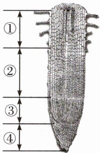 )A. ①区域是植物吸收水和无机盐的主要部位