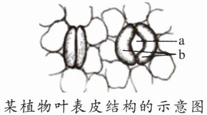3. 右图是同学们用显微镜观察到的某植物叶表皮结构的示意图。对图中a、b所示结构叙述错误的是 (