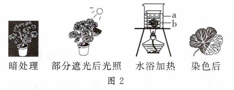13. 图1中字母分别代表植物的三种生理活动,图2是小莹探究植物某生理活动的实验步骤。请据图回答下列问题。([ ]内填序号)