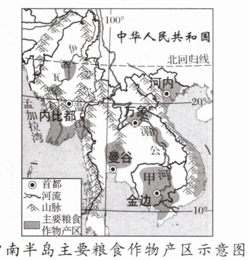 9. 中南半岛主要粮食作物及分布区为 (