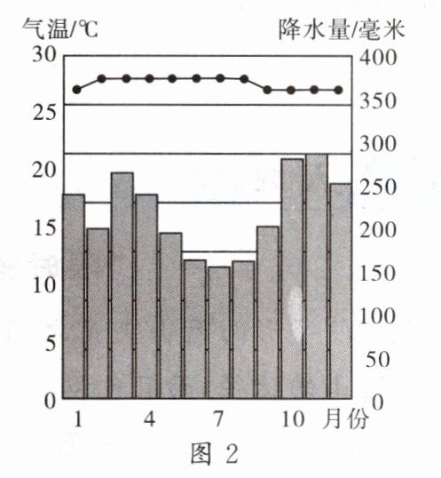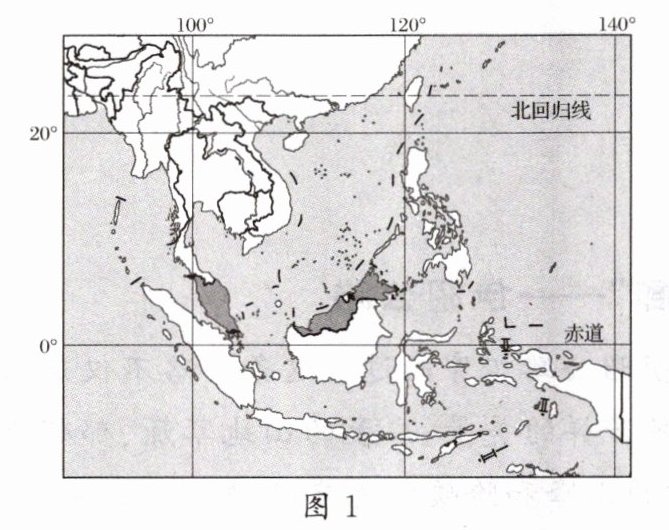 马来西亚政府宣布从2023年12月1日开始,对中国公民实施入境30天内免签证的便利措施,吸引中国游客前往。图1为“马来西亚周边区域图”,图2为“马来西亚气候图”。读图,完成10~12题。