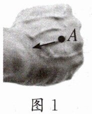 实验 1:左手保持握拳姿势,使手背“青筋”突起明显。用右手拇指向下按压左手“青筋”A 处(如图 1),再用食指从拇指按压处沿着“青筋”向手肘(箭头所指)方向推挤一段后,食指离开,但拇指始终压在 A 处,原本隆起的“青筋”变塌陷。松开按压的拇指后,手背“青筋”恢复如初。