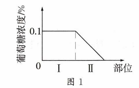 (1) 图 1 中部位Ⅱ的葡萄糖浓度从 0.1%最终降为 0,是因为该部位发生了