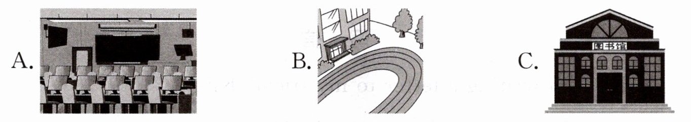 May 在向同学们作介绍。你知道下面哪幅图片是 May 介绍的地方吗?请根据对话选一选。____