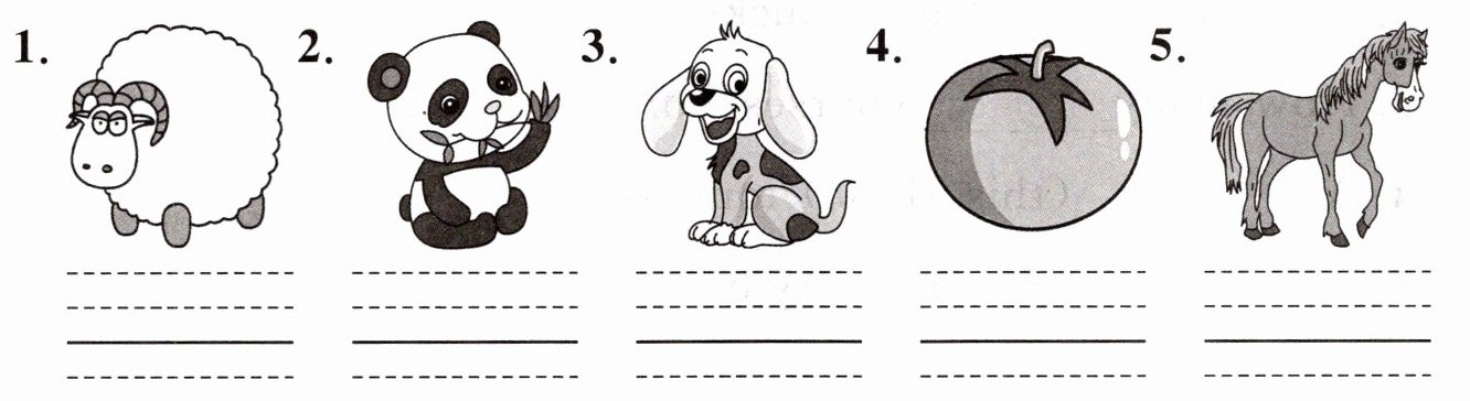 1.sheep 2.panda 3.dog 4.tomato 5.horse