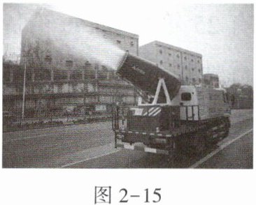 17. 如图 2-15 所示为多功能抑尘车(又名雾炮车),它能喷出细小的水雾,起到净化空气的作用。其参数如下:空车质量 6t,满载时可装水 18m³,满载时匀速行驶 900m 用时 3min(不喷水)。(ρ水=1.0×10³kg/m³,g 取 10N/kg)