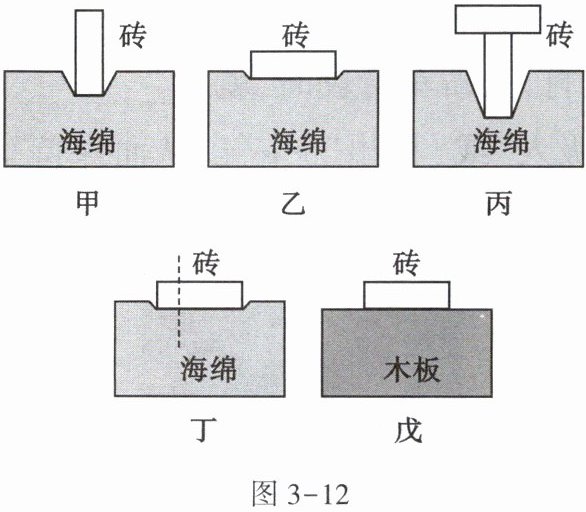 15. 如图3-12所示,小明利用海绵、砖、木板等探究影响压力作用效果的因素。