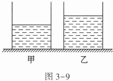 12. 两个完全相同的圆柱形容器静止放在水平桌面上,其中分别装有质量相等的水和酒精,液面高度如图3-9所示。甲容器中液体对容器底部的压强和压力分别为$p_{1}$和$F_{1}$,乙容器中液体对容器底部的压强和压力分别为$p_{2}$和$F_{2}$;甲容器对桌面的压强和压力分别为$p_{1}'$和$F_{1}'$,乙容器对桌面的压强和压力分别为$p_{2}'$和$F_{2}'$。已知水的密度大于酒精的密度,下列判断正确的是( )