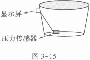 18. 为解决山区缺水问题,一些农户修建了水窖,在雨季将雨水收集到水窖中,以备干旱季节使用。小明家也修建了这样一个水窖,形状如图3-15所示。为便于观察储水情况,小明在水窖底部安装了一个压力传感器,压力大小在显示屏上显示,压力大表示水窖中的水较____。用水过程中发现,虽然每天用水量基本相同,但每天压力大小下降却不相同,而且随着储水量的减少,下降得越来越快,出现该现象的原因是____。