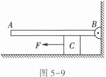 10. 将一块均匀木板 AB 的 B 端固定在墙壁的转轴上,木板可在竖直面内自由转动,木板下垫有长方体木块 C,木板恰好处于水平放置,如图 5 - 9 所示。现用水平力 F 将木块 C 由木板的 B 端向 A 端缓慢匀速拉动,在拉动的过程中,下列说法正确的是 ( )