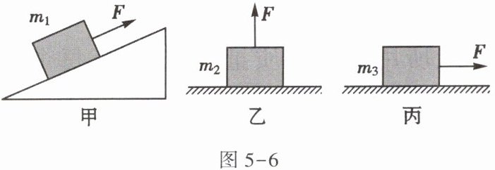 7. 如图 5 - 6 所示,已知 $ m_1 > m_2 > m_3 $,在同样大小的力 F 的作用下,三个物体沿力的方向移动相同的距离 s,则力 F 所做的功 ( )