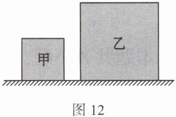 13. (双选)如图12所示,均匀实心正方体甲、乙置于水平地面上,它们对地面的压力相等,甲的棱长小于乙的棱长,现分别沿水平方向或竖直方向将两个正方体只切去一部分,剩余部分对地面的压强分别为p_甲和p_乙。下列说法正确的是( )