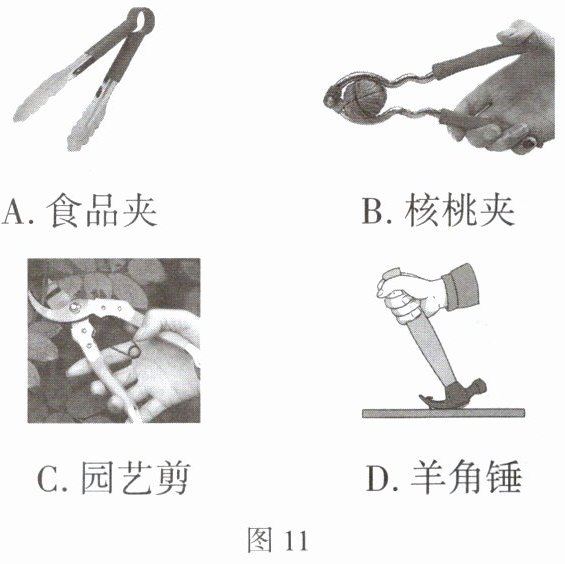 12. 使用杠杆能给我们的生活带来便利,如图11所示的杠杆属于费力杠杆的是( )