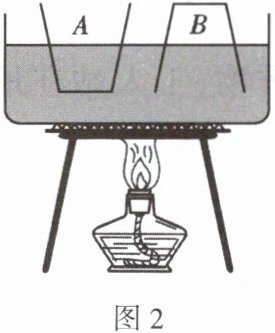 4. 两个完全相同的玻璃杯A和B,A倒扣着放入盛水的容器中,B中装有一些水,如图2所示放置。用酒精灯给容器中的水加热,使水沸腾后继续加热的过程中,A杯中的水____沸腾,B杯中的水____沸腾。(均选填“能”或“不能”)
