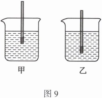 13. (双选)置于水平桌面上的两个完全相同的容器内分别装有深度相同的甲、乙两种液体,现将同一支密度计分别放在甲、乙两种液体中,静止时如图9所示。下列判断正确的是( )
