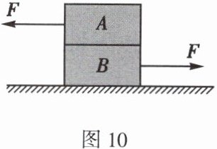 14. (双选)如图10所示,A、B两个物体叠放在水平面上,同时有$F=2N$的两个水平力分别作用于A、B两物体上,使A、B两个物体处于静止状态。下列分析正确的是( )
