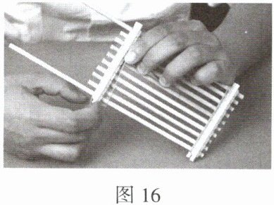 20. 学了浮力知识后,科技小组的同学用筷子自制了一个木筏模型,如图16所示。木筏的质量为100g、体积为$180cm^{3}$。($ρ_{水}=1.0×10^{3}kg/m^{3}$,g取10N/kg)