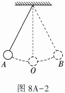 2. 如图8A-2所示,将摆球从A点由静止释放,经过最低点O到达B点,A、B两点等高,摆球到达B点时动能为____J;摆球从A点到O点的过程中,____能转化为动能。整个过程中,摆球的机械能大小____(选填“不变”或“减少”)。