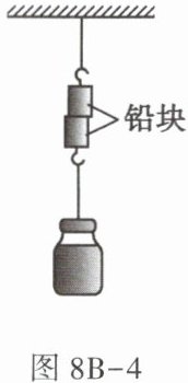 4. 如图8B-4所示,将两个底面干净、平整的铅块紧压在一起,两个铅块就会结合在一起,下面吊一个较重的物体也不会被它拉开。此现象说明()