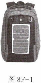 3. 如图8F-1所示是一种太阳能背包,它的前面有一个太阳能电池板,里面有一个蓄电池,可以给手机、小风扇或数码相机等电子产品供电。下列说法正确的是 ( )