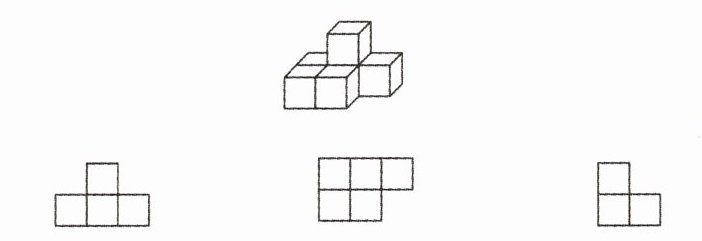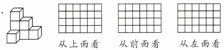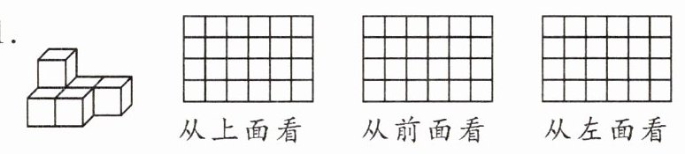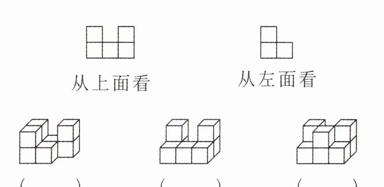 一、下面的三个图形分别是上面的几何体从什么方向看到的?填一填。(填“上”“前”或“左”)