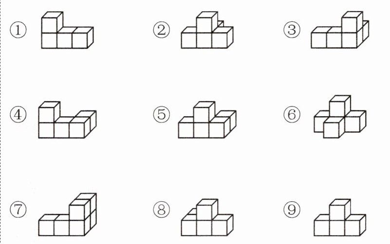 五、如图所示,要使从上面看到的图形不变,按要求摆一摆。