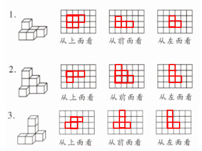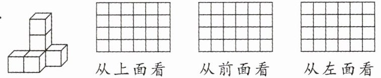 三、下面几何体从上面、前面和左面看到的图形分别是什么?画一画。