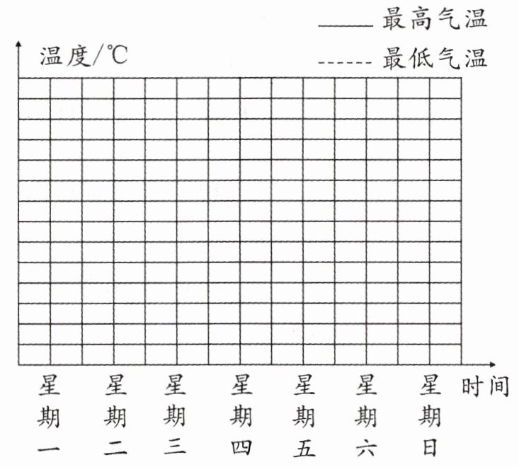 答案:图略(需根据实际记录的数据绘制),从统计图中可以得到这一周每天最高气温和最低气温的变化情况,比如最高气温和最低气温的差值,气温的升降趋势等。