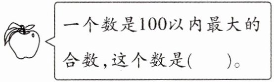 解析:本题考查合数的概念。合数是指在大于1的整数中除了能被1和本身整除外,还能被其他数(0除外)整除的数。100以内最大的合数是99,因为99除了能被1和99整除外,还能被3、9、11、33整除。