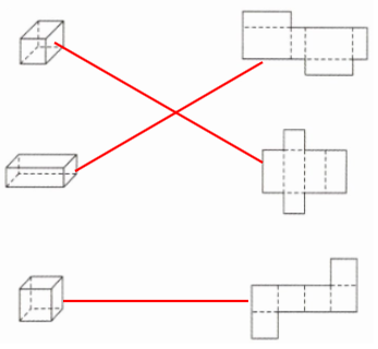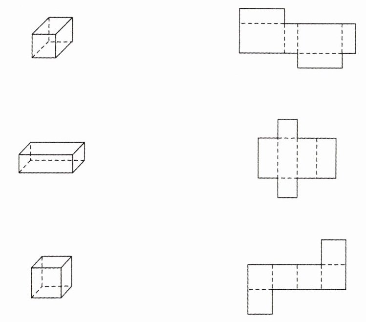 三、找朋友。(把下面的长方体、正方体和相应的展开图连起来)