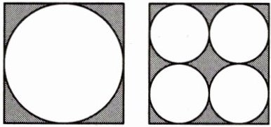4. 有两个边长相等的正方形,在其中一个正方形里画 1 个最大的圆,另一个正方形里画 4 个相等的圆(如图)。下面说法中错误的是(