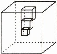【例 3】下图是一个棱长为 2 cm 的正方体,在正方体上表面的正中间,向下挖一个棱长为 1 cm 的正方体小洞,接着在小洞的底面正中间向下挖一个棱长为$\frac{1}{2}cm$的正方体小洞,第三个正方体小洞的挖法和前两个相同,棱长为$\frac{1}{4}cm$,那么最后得到的立体图形的表面积是多少平方厘米?