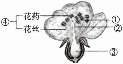 (2)花药中的花粉传到①上,花受粉后③发育成______,其中的胚珠发育成______。