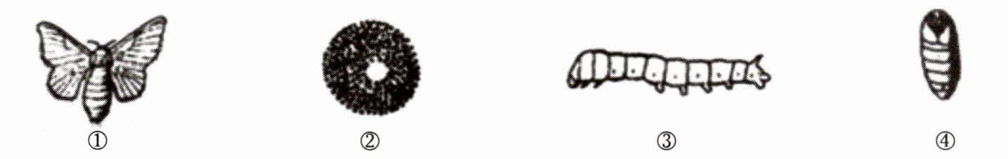 5. 任何有生命的个体都在成长与变化着,每种生物都经历了一系列的生长阶段,科学家们把这种阶段性的变化过程叫作生命周期。如图所示是家蚕发育的全过程,它的正确顺序是()。