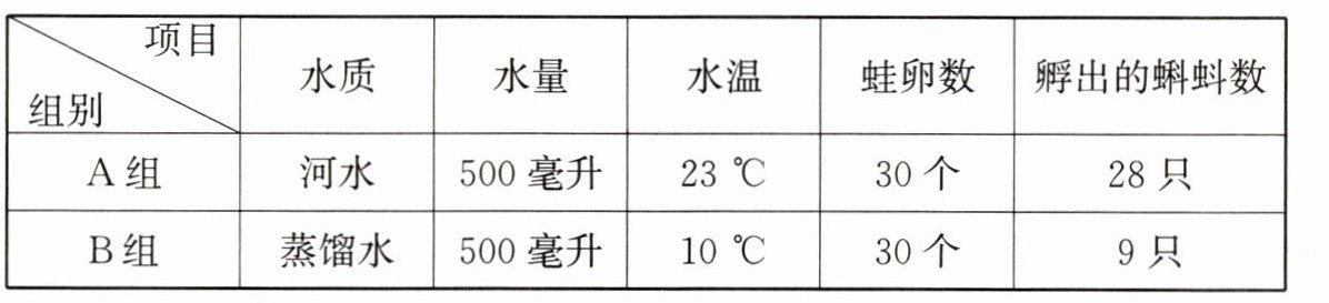 12. 某兴趣小组就“不同水质对蛙卵孵化的影响”进行了探究,其实验记录如表: