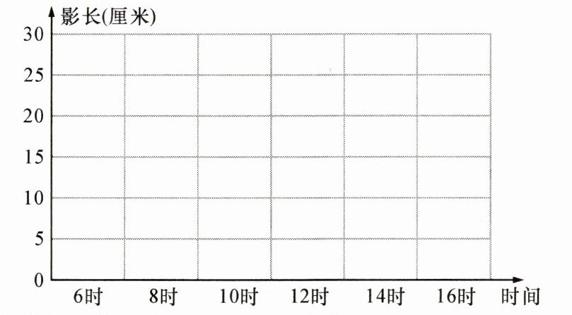 16. 根据一根短杆“一天的影长记录表”,画出影长变化柱状图,并回答的问题。