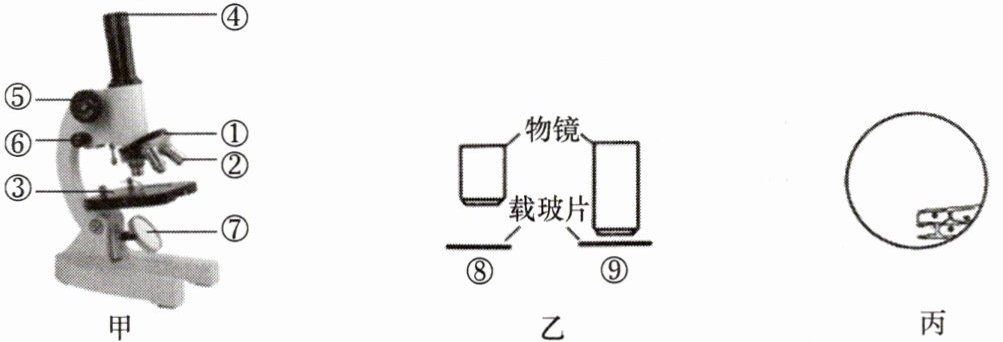 (3)乙图清晰物像的视野中,细胞数目多的是______(填“⑧”或“⑨”)。