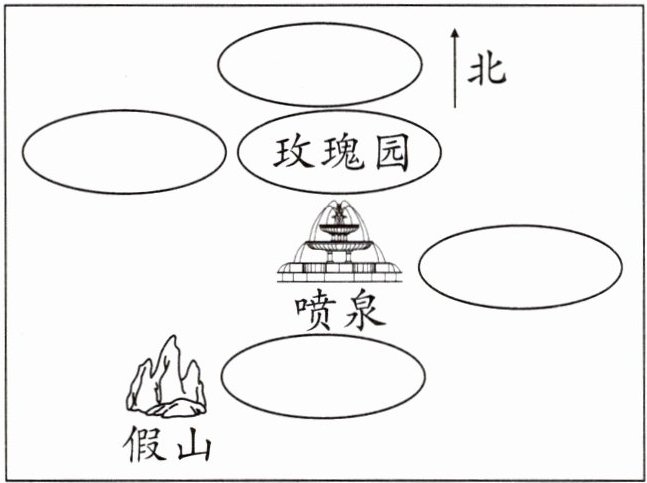 四、根据下面的描述标明植物园示意图中的各处的名称。